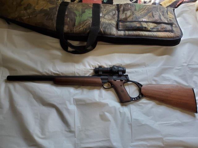 Make: BrowningModel: Buck MarkAction: Barrels: 1Caliber: .22 LRBarrel Length: 18"Overall Length: 33.5"Shot: 0Status: Sold