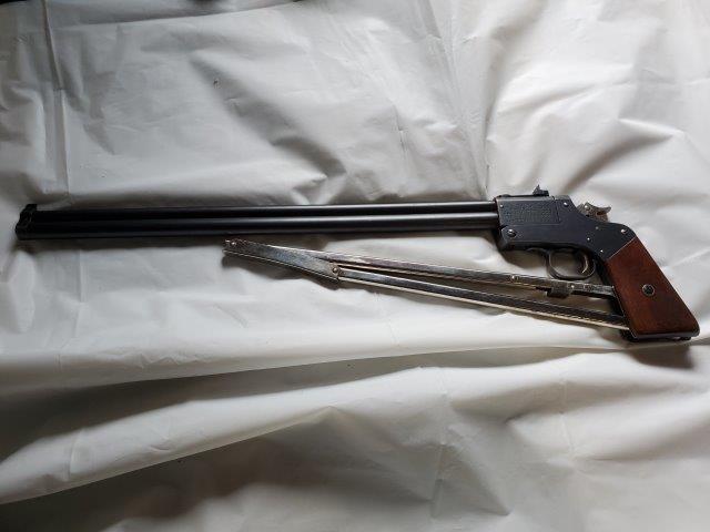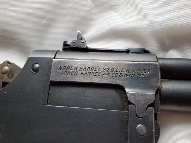 Make: MarblesModel: Game Getter Model 1921Action: BreakBarrels: 2Caliber: .22 S.L.LR & N.R.A / .44 GG & .410 2Barrel Length: 18"Overall Length: 33"Shot: 0Status: Appraised