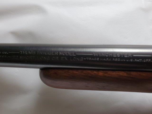 Make: WinchesterModel: Thumb Trigger model 99Action: BoltBarrels: 1Caliber: .22 S/L/XLBarrel Length: 18"Overall Length: 33.75"Shot: 0Status: Appraised