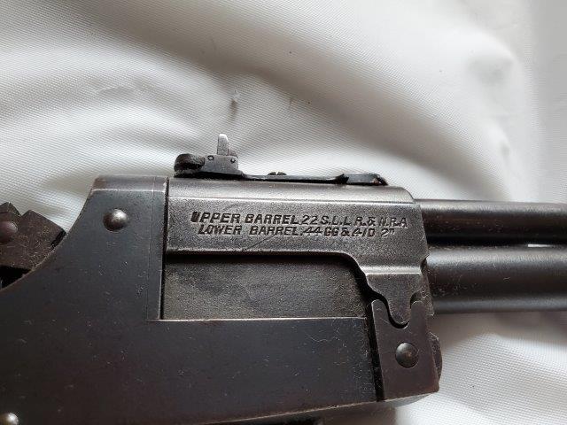 Make: MarblesModel: Game Getter Model 1921Action: BreakBarrels: 2Caliber: .22 S/L/LR & N.R.A / .44 GG .410 2Barrel Length: 18"Overall Length: 33"Shot: 0Status: Appraised