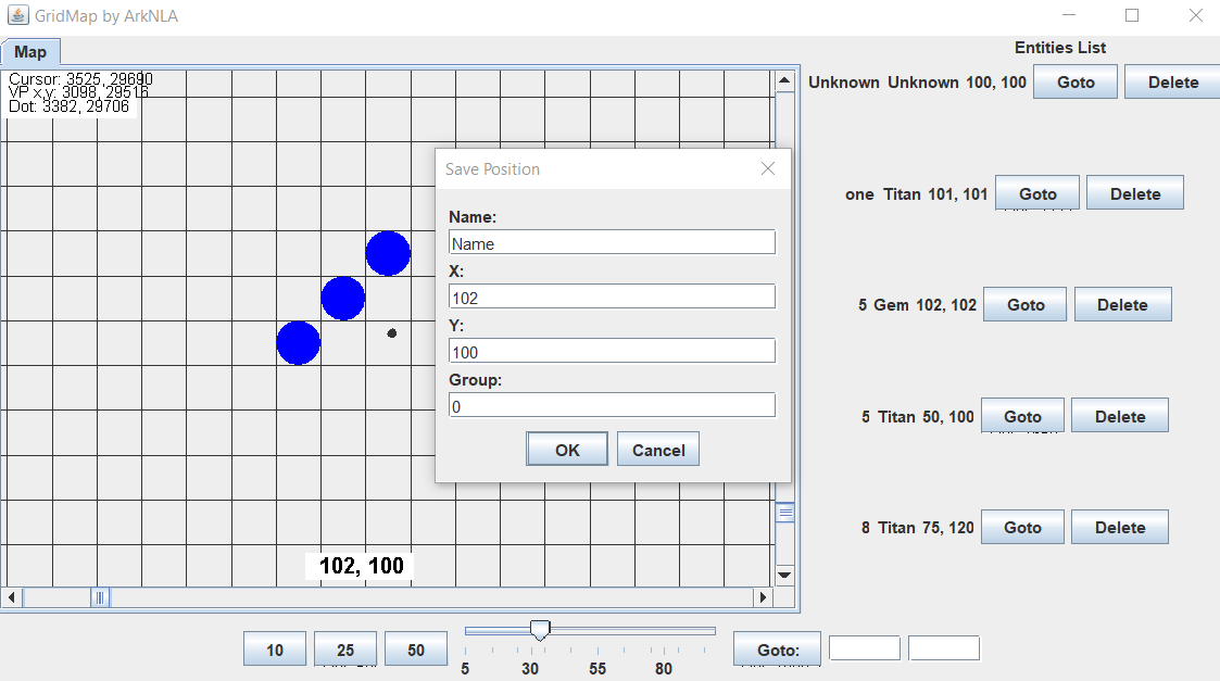 Created for use with a specific mobile game in mind, GridMap allows you to visualize the spread of entities for any coordinate grid type map. The inspiration to create this Java desktop application comes from the difficulty of finding reward nodes that are spread out and hard to find. Within this mobile game, there are titan mobs that, when killed, randomly throw out a certain number of reward nodes on the map. Utilizing this program, I was able visualize the spread and determine an easier way of finding the reward nodes.