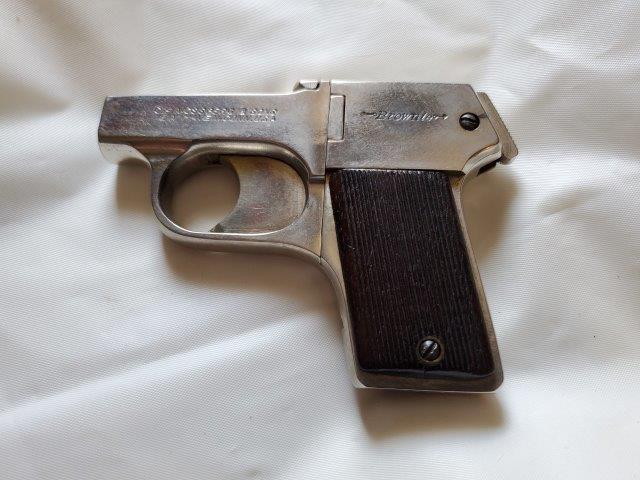 Make: MossbergModel: BrownieAction: Barrels: 4Caliber: .22 LRBarrel Length: 2.5"Overall Length: 4.5"Shot: 4Status: Sold