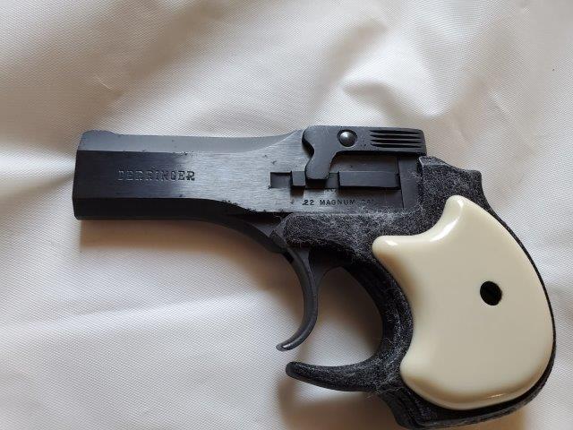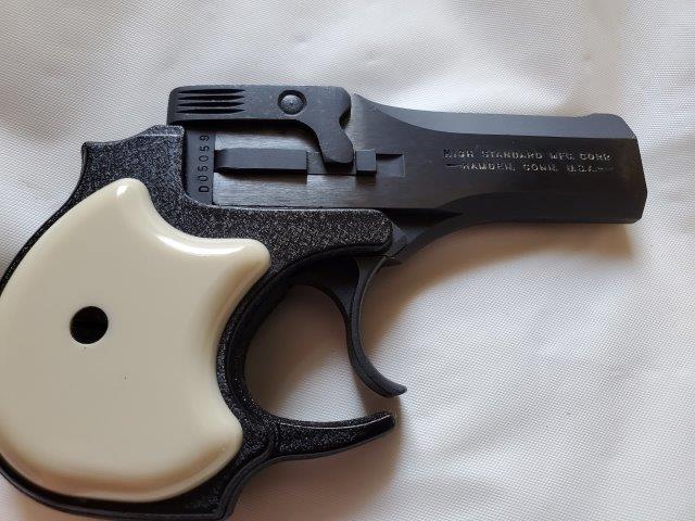 Make: High StandardModel: DerringerAction: Barrels: 1Caliber: .22 MagnumBarrel Length: 3.5"Overall Length: 5"Shot: 2Status: Sold