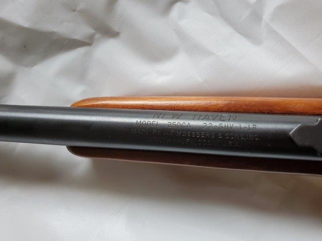 Make: MossbergModel: New Haven 250CAAction: Semi-AutoBarrels: 1Caliber: .22 SHV/L/LRBarrel Length: 18.5"Overall Length: 38.5"Shot: 0Status: Appraised