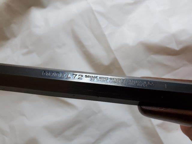 Make: SavageModel: 72Action: LeverBarrels: 1Caliber: .22 S/L/LRBarrel Length: 22"Overall Length: 37"Shot: 0Status: Appraised