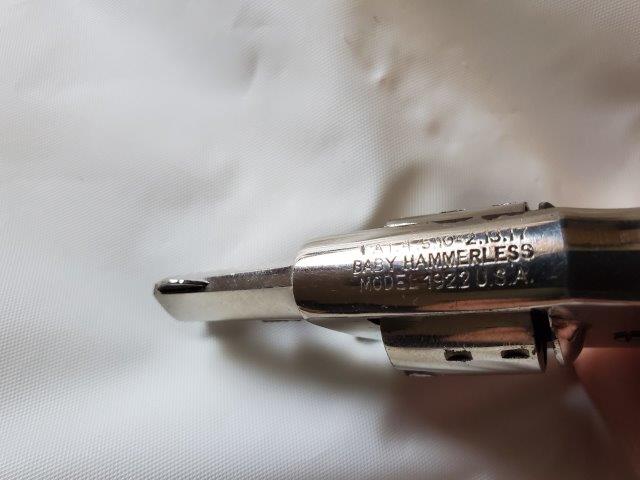 Make: KolbModel: Baby Hammerless Model 1922Action: Barrels: 1Caliber: .22Barrel Length: 1.375"Overall Length: 4.125"Shot: 6Status: Awaiting Appraisal