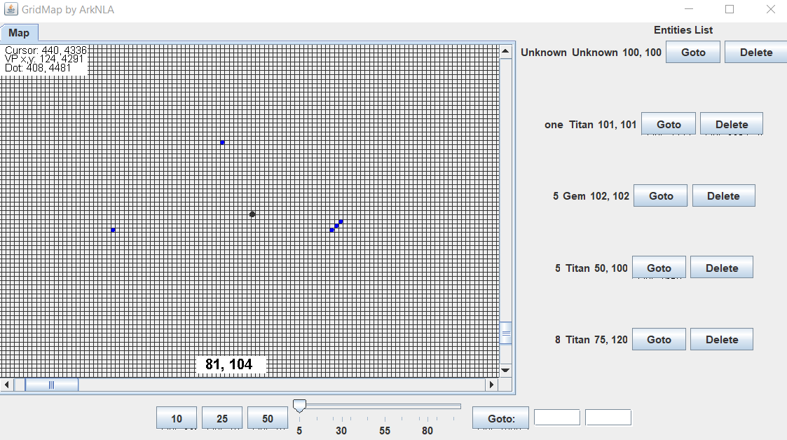 Created for use with a specific mobile game in mind, GridMap allows you to visualize the spread of entities for any coordinate grid type map. The inspiration to create this Java desktop application comes from the difficulty of finding reward nodes that are spread out and hard to find. Within this mobile game, there are titan mobs that, when killed, randomly throw out a certain number of reward nodes on the map. Utilizing this program, I was able visualize the spread and determine an easier way of finding the reward nodes.